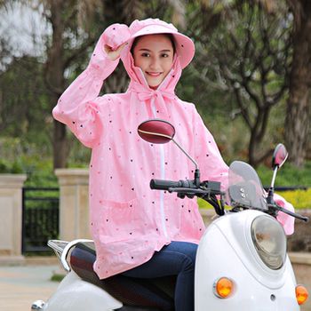 电动车防晒衣服电瓶摩托骑车遮阳连帽女夏长袖披肩防紫外纯棉带帽