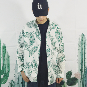 韩国ulzzang短袖衬衫港风复古chic风棉麻宽松夏威夷衬衣外套男女